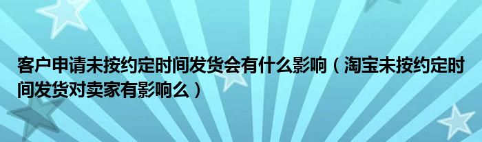 关于客户申请未按约定时间发货会有什么影响,淘宝未按约定时间发货对卖家有影响么这个很多人还不知道,今天菲菲来为大家解答以上的问题,现在让我们一起来看看吧!