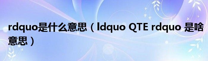 关于rdquo是什么意思,ldquo QTE rdquo 是啥意思这个很多人还不知道,今天菲菲来为大家解答以上的问题,现在让我们一起来看看吧!