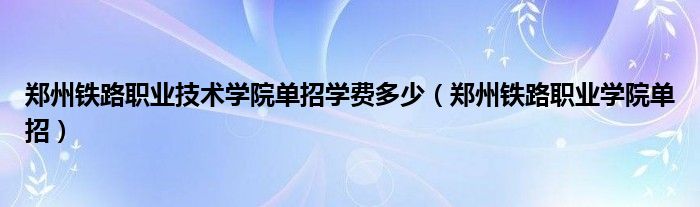 大家好,小联来为大家解答以上的问题。郑州铁路职业技术学院单招学费多少,郑州铁路职业学院单招这个很多人还不知道,现在让我们一起来看看吧!