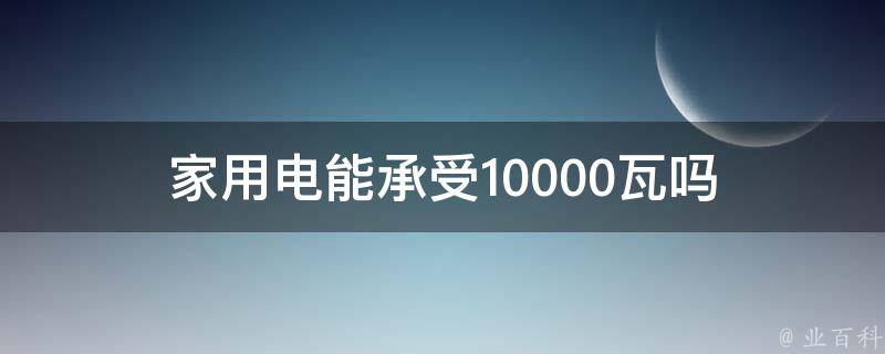 家用电能承受10000瓦,家庭用电的最大负荷取决于家庭的电力供应能力和电器设备的总功率需求。一般来说,家庭用电的最大负荷通常在5000瓦(5千瓦)到10000瓦(10千瓦)之间。然而,实际的家庭用电负荷会因家庭规模、电器设备种类和使用习惯等因素而有所不同。