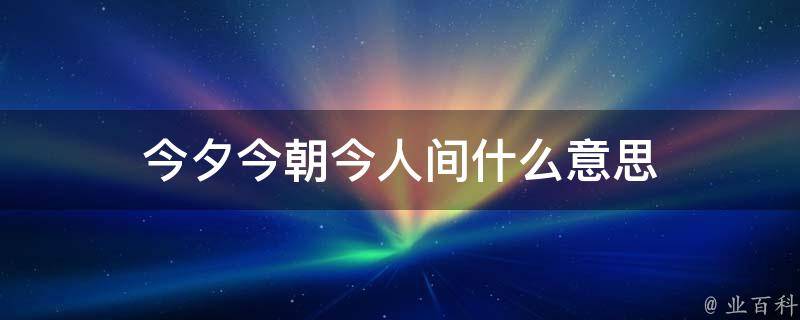 今夕今朝今人间的意思是今晚、今天、现在的人间。何年何月何时节,今夕今朝今人间这句话的意思是哪一年、哪一月、哪一个季节,能像今晚、今天、现在的人间这样美好。纵使时代沧海柔田,人心变化万千,但人们总会在某一个时间点上,与前人达到心灵上的共鸣。