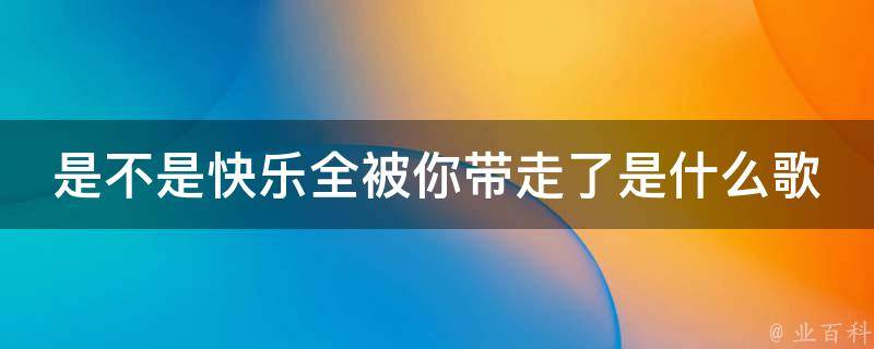 是不是快乐全被你带走了是歌曲《忘了》,由周林枫演唱,张俊波作词。部分歌词是:你怎么忘了,你先说的爱我,抽屉里放着,你送的音乐盒,是不是快乐,全被你带走了。还是习惯孤独一个人的生活,我也能释怀,并不能释怀。