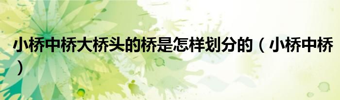 大家好,小联来为大家解答以上的问题。小桥中桥大桥头的桥是怎样划分的,小桥中桥这个很多人还不知道,现在让我们一起来看看吧!