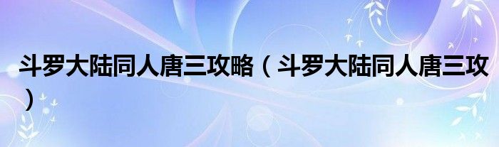 斗罗大陆同人唐三攻略(斗罗大陆同人唐三攻)