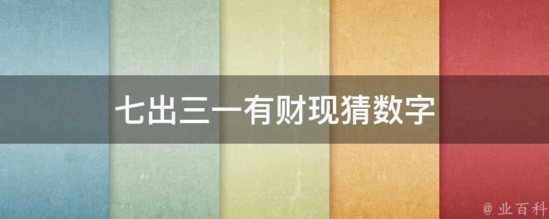 七出三一有财现是数字32。从七出三一有财现的笔画去猜测数字,七字2笔画、出字5笔画、三字3笔画、一字1笔画、有字6笔画、财字7笔画、现字8笔画,7个字一共是2+5+3+1+6+7+8=32笔。因此七出三一有财现是数字32。