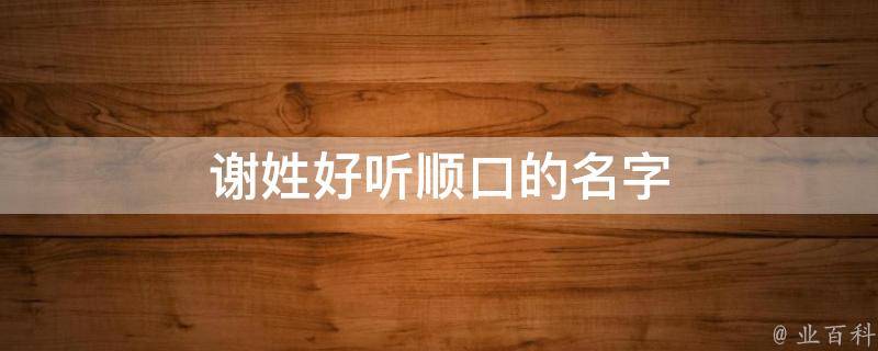 谢姓好听顺口的名字有谢文风、谢婉儿、谢熙泽、谢凌风、谢意、谢诗妙、谢俊霄、谢宛静、谢聪玥、谢梦瑶、谢沐声、谢蓉希、谢景、谢玄穆、谢玉竹、谢清振、谢元俊、谢瀚炎、谢木微、谢若亿、谢纪俊、谢辰庆、谢一轩、谢雪宁等。