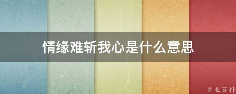 情缘难斩我心的意思是感情难以割舍。情缘难斩我心是一种感慨,可以用于不同的情境中。例如,当一个人陷入爱河难以自拔时,或者对某个人或事情产生强烈感情而无法释怀时,可以用这句话来表达自己内心的挣扎和痛苦。