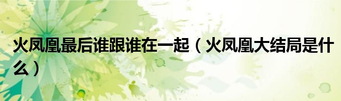 大家好,我是小科,我来为大家解答以上问题。火凤凰最后谁跟谁在一起,火凤凰大结局是什么很多人还不知道,现在让我们一起来看看吧!