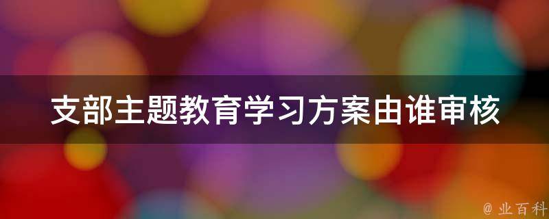 支部主题教育学习方案由上级党组织审核。党的各级委员会实行集体领导和个人分工负责相结合的制度。凡属重大问题都要按照集体领导、民主集中、个别酝酿、会议决定的原则,由党的委员会集体讨论,作出决定;委员会成员要根据集体的决定和分工,切实履行职责。