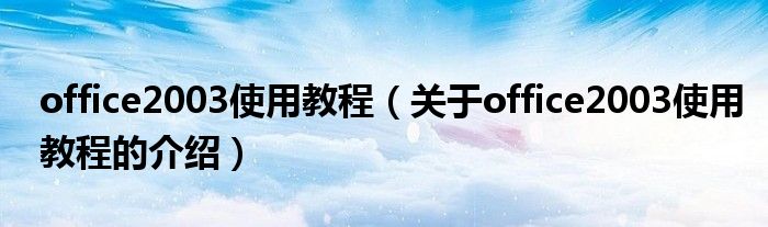 大家好,小虎来为大家解答以上的问题。office2003使用教程,关于office2003使用教程的介绍很多人还不知道,现在让我们一起来看看吧!