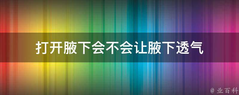 打开腋下可以让腋下透气。在穿着紧身衣物时,腋下被紧紧包住,会导致腋窝无法透气,增加出汗,从而使得细菌加速分解汗液,汗臭味就会变得更加明显。穿着宽松的衣物有利于散热、透气,可以防止腋下出汗。
