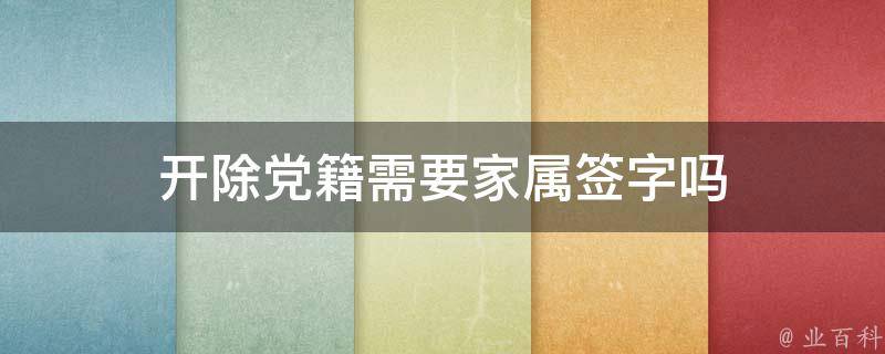 开除党籍不需要家属签字,及时通知被开除党籍本人即可。开除党籍处分决定作出后,应当在一个月内向受处分党员所在党的基层组织中的全体党员及其本人宣布。《中国共产党纪律处分条例》第四十一条规定,党纪处分决定作出后,应当在一个月内向受处分党员所在党的基层组织中的全体党员及其本人宣布,是领导班子成员的还应当向所在党组织领导班子宣布,并按照干部管理权限和组织关系将处分决定材料归入受处分者档案。