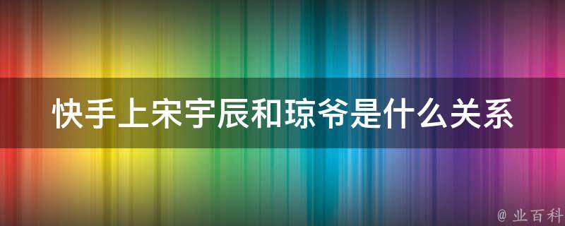 宋宇辰和琼爷是朋友关系。宋宇辰是一位快手音乐人,而琼爷是一位快手主播,两人并无直接联系。网上传言称,琼爷和宋宇辰为合作关系,二人为互相拍段子赢取点击量,并未真实在一起,因此两人之间仅为朋友关系。