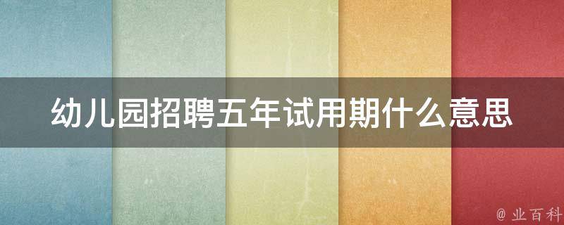幼儿园招聘五年试用期是指单位与劳动者签订的劳动合同期限为五年,在约定试用期的时候,最长不得超过六个月。这个试用期可约定,也可不约定。若需要约定的话,则约定的试用期期限,从1天到6个月时间不等。用人单位与劳动者可以协商约定劳动关系履行的时间,试用期的期限根据劳动合同的期限而定。