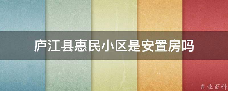 庐江县惠民小区不是安置房,而是单位自建房。安置房,是政府进行城市道路建设和其他公共设施建设项目时,对被拆迁住户进行安置所建的房屋。即因城市规划、土地开发等原因进行拆迁,而安置给被拆迁人或承租人居住使用的房屋。