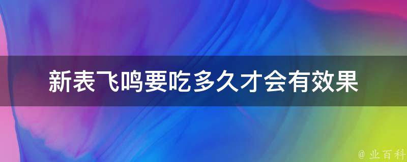 新表飞鸣S要吃一周左右会到效果,具体效果与自身的身体情况和肠胃健康有关。新表飞鸣S片为日本畅销的肠道调理药,对肠胃健康有很好的改善作用。服用新表飞鸣S时需严格遵照医嘱,如有不适,请务必咨询医生或与专业人士交谈。