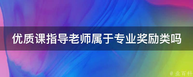 优质课指导老师不属于专业奖励类,优质课奖励类别属于教学工作,教师专业奖励不含优质课,教师的专业奖励包括国家级全国模范教师、全国优秀教师;省级优秀教师、省级骨干教师;市级优秀班主任、市级优秀教师等,优质课属于专业技能类的奖励。优秀教师奖励类别属于教学工作优秀班主任奖励类别属于工作业绩,年终优秀奖励类别属于专业技术。
