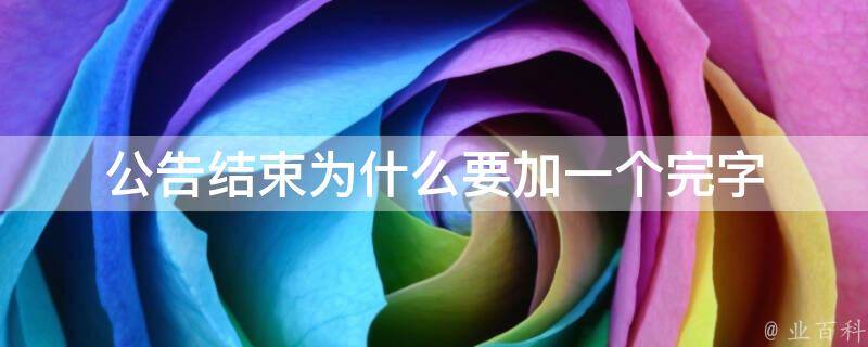 公告结束加一个完字,意思是这个公告没有后续报道,如果没加这个完字,可能以后还会有跟进的内容。公告结束加完字是为了告知阅读者这篇文章到这部分就结束了,对于特大稿件来说,加完字非常有必要,比如几万字甚至上十万字的大稿件,方便读者阅读。