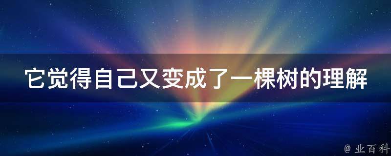 它觉得自己又变成了一棵树的理解是:某个人或物感觉自己重新变成了一棵树。这种表述可能是在表达一种回归自然、与大自然融为一体的感觉,或者是在形容一种宁静、平和的心境。树是自然界中非常重要的一部分,它们提供了氧气、吸收了二氧化碳,同时也为其他生物提供了庇护和食物。因此,当人们感觉自己像一棵树一样,可能是在表达他们渴望与自然和谐相处,享受大自然的美好,或者是在形容他们内心的平静和安宁。此外,树也常常被用来象征生命、成长和永恒。当人们感觉自己像一棵树一样,可能是在表达他们对生命的热爱和对未来的希望,或者是在形容他们对生命的坚韧和不屈不挠的精神。