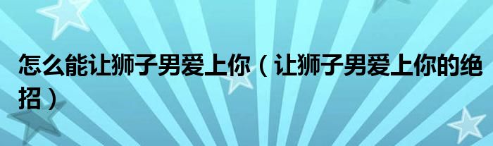 大家好,我是小科,我来为大家解答以上问题。怎么能让狮子男爱上你,让狮子男爱上你的绝招很多人还不知道,现在让我们一起来看看吧!