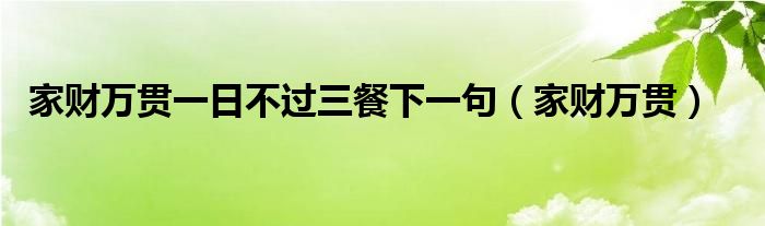 大家好,我是小科,我来为大家解答以上问题。家财万贯一日不过三餐下一句,家财万贯很多人还不知道,现在让我们一起来看看吧!