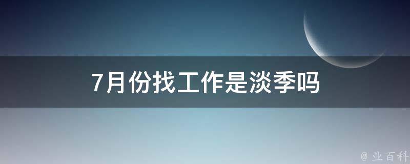 7月份找工作是淡季。一般来说,每年的年底年初两个月,以及年中的6、7月份,相对是招聘的淡季。不过这只是一般情况,具体到不同行业、不同地区、不同公司,招聘淡旺季可能会有所不同。