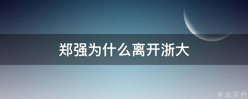 郑强离开浙大是因为他的目标是在中国顶尖的大学中做校长,而离开浙江大学可能是他实现这一目标的一部分。郑强,男,汉族,中国国籍,1960年9月生,出生于重庆,籍贯福建武夷山,中共党员,工学博士,教授,博士生导师。