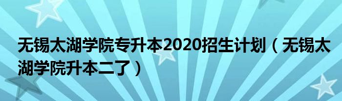 无锡太湖学院专升本2020招生计划(无锡太湖学院升本二了)