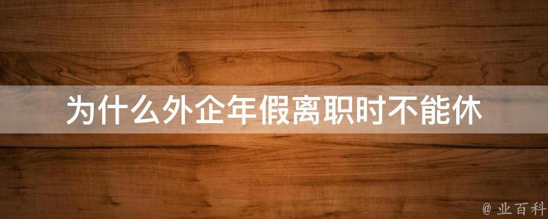 外企年假离职时不能休是因为离职后劳动关系已经不存在,不符合享受年假的条件,自然无法休年假。年假,指给职工一年一次的假期。即机关、团体、企业、事业单位、民办非企业单位、有雇工的个体工商户等单位的职工,凡连续工作1年以上的,均可享受带薪年休假。