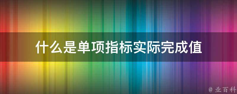 单项指标实际完成值指的是能反映分析对象某一特征的指标实际完成的数值。单项指标是指那些所揭示的内容只能反映分析对象某一特征的指标,这种指标具有单一性和精确性。单项指标与综合指标相结合,有助于指标体系更简便、更有意义。