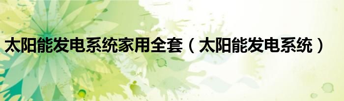大家好,我是小科,我来为大家解答以上问题。太阳能发电系统家用全套,太阳能发电系统很多人还不知道,现在让我们一起来看看吧!