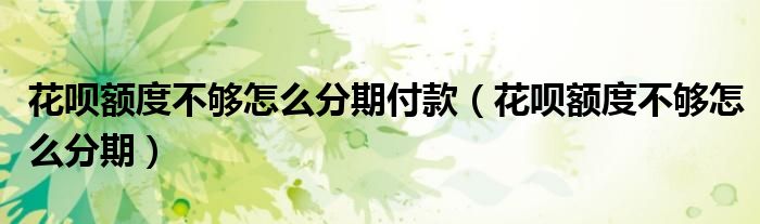 大家好,我是小科,我来为大家解答以上问题。花呗额度不够怎么分期付款,花呗额度不够怎么分期很多人还不知道,现在让我们一起来看看吧!