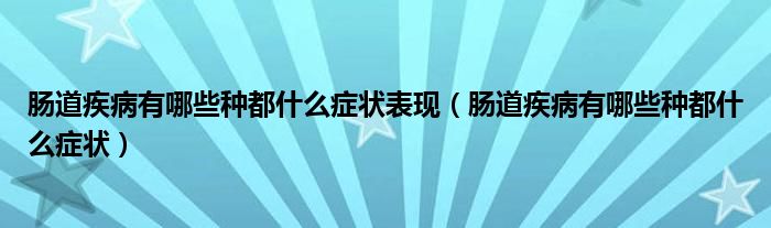 大家好,乐天来为大家解答以下的问题,肠道疾病有哪些种都什么症状表现,肠道疾病有哪些种都什么症状很多人还不知道,现在让我们一起来看看吧!