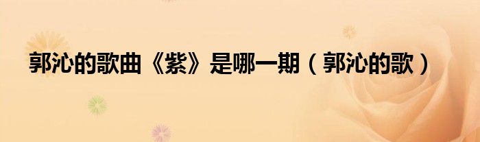 大家好,我是小科,我来为大家解答以上问题。郭沁的歌曲《紫》是哪一期,郭沁的歌很多人还不知道,现在让我们一起来看看吧!