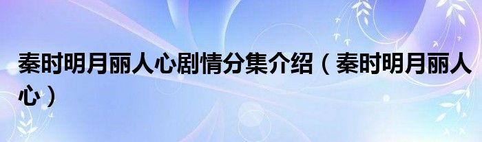 秦时明月丽人心剧情分集介绍(秦时明月丽人心)