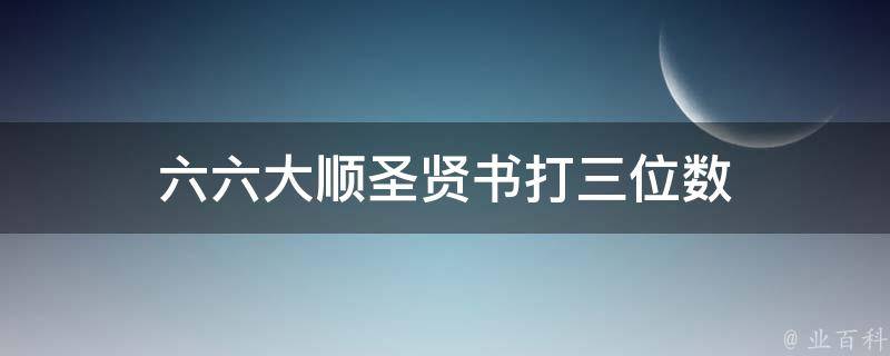 六六大顺圣贤书打三位数是663。六六大顺本指农历六月初六,顺与三的声母相同,所以,六六大顺圣贤书打三位数是663。在数字谐音中,6代表顺利、溜达;3代表想念、生命、生活。另外,0代表圆满、完美、无尽;1代表唯一、你、起点;2代表爱、两人世界。