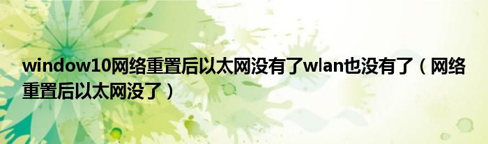 大家好,我是小科,我来为大家解答以上问题。window10网络重置后以太网没有了wlan也没有了,网络重置后以太网没了很多人还不知道,现在让我们一起来看看吧!