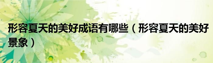 大家好,小联来为大家解答以上的问题。形容夏天的美好成语有哪些,形容夏天的美好景象这个很多人还不知道,现在让我们一起来看看吧!