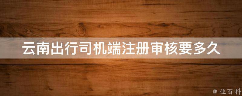 云南出行司机端注册审核要10-20个工作日,前提是提交的证件符合审查条件。否则一旦被退回,审核时间可能重新计算。所以提交资料的时候,一定要认真审查一遍。审核通过后,申请人须到预约现场确认约考的时间和地点,并自行打印《出租汽车驾驶员从业资格考试申请表》《审核结果告知书》。