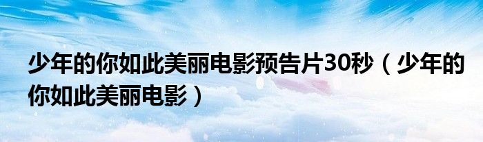 大家好,小联来为大家解答以上的问题。少年的你如此美丽电影预告片30秒,少年的你如此美丽电影这个很多人还不知道,现在让我们一起来看看吧!