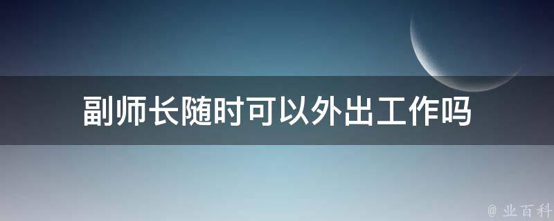 副师长不可以随时外出工作。按照条令规定,第一百五十条,军人外出必须按级请假,按时归队销假;未经领导批准不得外出。副师长是军队中重要的职位之一,负责协助师长管理部队的工作。他们的级别通常与师参谋长相同,都是师级单位的大校级军官。