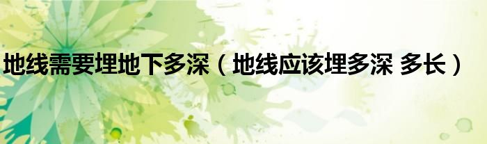 大家好,小联来为大家解答以上的问题。地线需要埋地下多深,地线应该埋多深 多长这个很多人还不知道,现在让我们一起来看看吧!