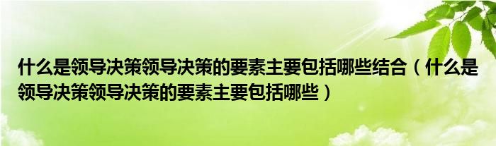 大家好,小联来为大家解答以上的问题。什么是领导决策领导决策的要素主要包括哪些结合,什么是领导决策领导决策的要素主要包括哪些这个很多人还不知道,现在让我们一起来看看吧!
