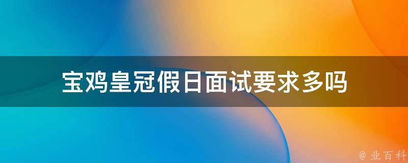 宝鸡皇冠假日面试要求不多。一般酒店面试就是问一些过往的工作经验,有没有类似的经历等。高级点的酒店会问一些突发性事件的处理办法以及自己想法和学到的经验。面试前台接待,主要看形象,身高足够,五官端正就行。