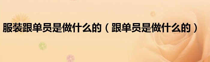 最佳答案大家好,我是小科,我来为大家解答以上问题。服装跟单员是做什么的,跟单员是做什么的很多人还不知道,现在让我们一起来看看吧!一、服装质量跟单员主要工作内容如下: 1、大货生产前,要全面准备并了解制单,生产工艺(样板、面辅料)确认并掌握所有资料与制作的工艺是否统一。 2、生产车间各组必...