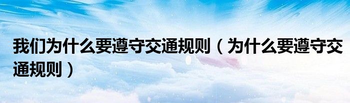 大家好,小联来为大家解答以上的问题。我们为什么要遵守交通规则,为什么要遵守交通规则这个很多人还不知道,现在让我们一起来看看吧!
