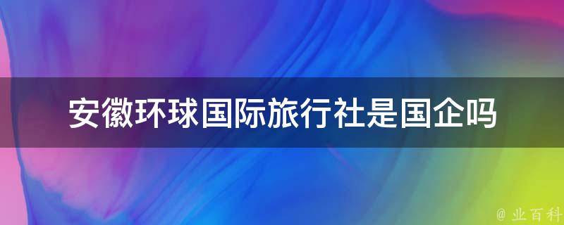 安徽环球国际旅行社不是国企。安徽环球国际旅行社(简称安徽环球国旅),是安徽省五A级等级旅行社、安徽省五星级优秀诚信旅行社。主要经营国内旅游、出境旅游、入境旅游以及旅游人才培训、旅游产品和景区开发等业务。