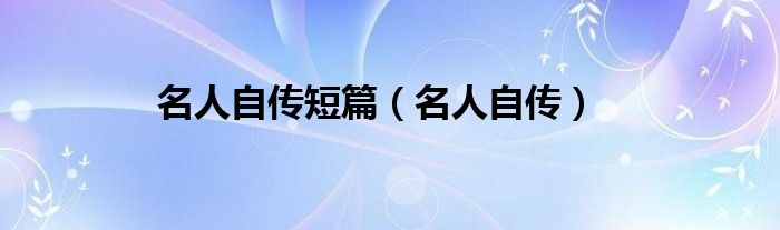 大家好,我是小科,我来为大家解答以上问题。名人自传短篇,名人自传很多人还不知道,现在让我们一起来看看吧!