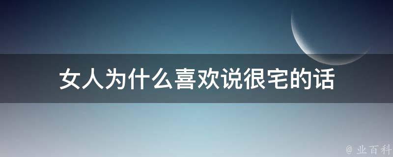 女人喜欢说很宅的话是因为有些女人天生就比较内向,喜欢安静的环境和独处的时间。她们可能觉得在家庭环境中更容易感到舒适和放松,因此更喜欢宅在家里。而且现代生活节奏快,很多人需要花费大量时间和精力在工作或学习上。为了获得放松和休息,女人们可能会选择宅在家里,避免社交活动和外出旅行等需要耗费精力的活动。