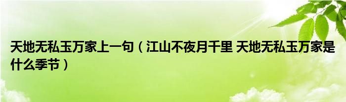 天地无私玉万家上一句(江山不夜月千里 天地无私玉万家是什么季节)